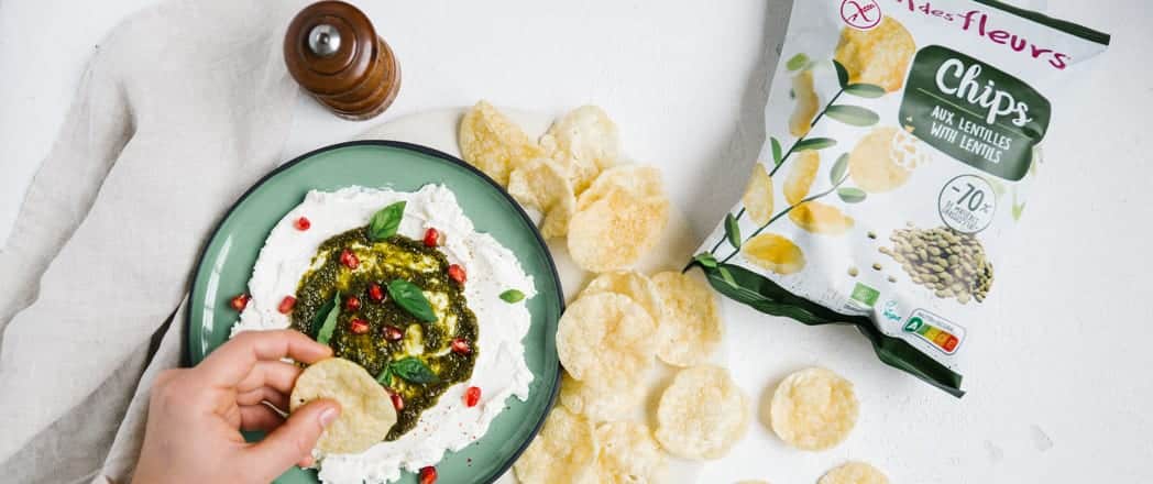 Pour varier les plaisirs les Chips aux lentilles Le Pain des Fleurs, par exemple qui comptabilisent seulement 7,2g de lipides aux 100g. Réalisées à base de farines de lentilles et de pommes de terre, elles sont délicieuses et croustillantes à souhait, apportent en moyenne 70% de matières grasses en moins (pour les chips aux lentilles et tout comme celles parfumées à l’oignon) que les chips classiques.