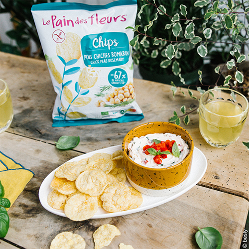 Les Chips aux pois chiche Le Pain des Fleurs, se déclinent désormais au romarin bio. Elles ont toutes deux un profil particulièrement adapté aux veggies car elles apportent 21g de protéines* et 9g * de fibres, ce qui les rendent très rassasiantes. Elles sont très peu salées (0,65g pour 100G*) et encore moins pour la version au romarin. Cette version toute aussi gourmande a une teneur en matières grasses réduite de 67% en comparaison avec les chips classiques.